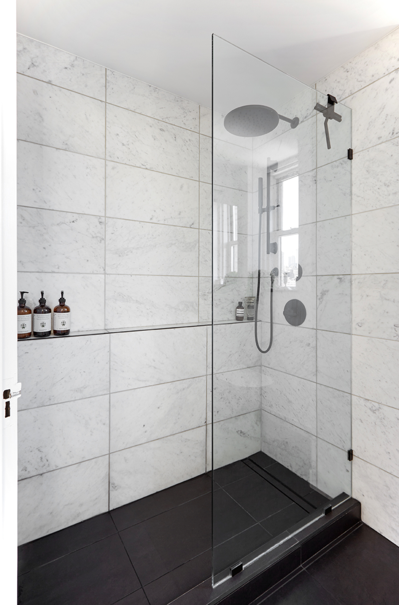 In Manhattan’s Upper East Side, Apex executed a complete gut renovation of a bathroom, transforming it into a refined expression of modern elegance. Subtle textures,