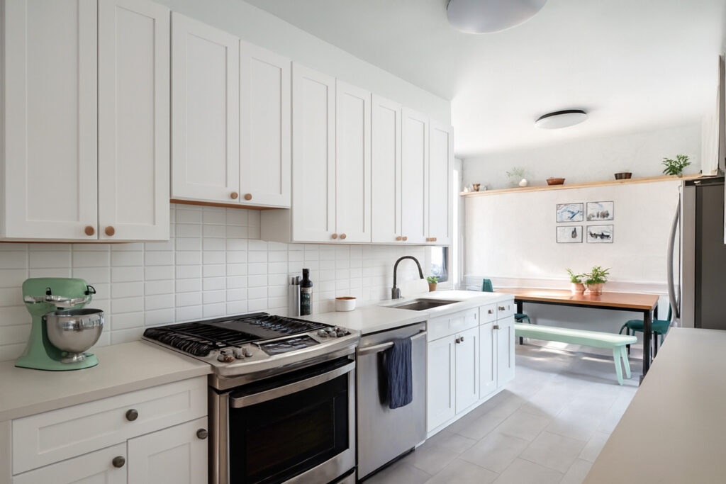 In Jackson Heights, Queens, Apex completely reimagined this kitchen through a full-scale gut renovation. Every element was renewed — from flooring and custom cabinetry to elegant tilework and modern appliances. The result: a refined, functional space where design meets everyday living.